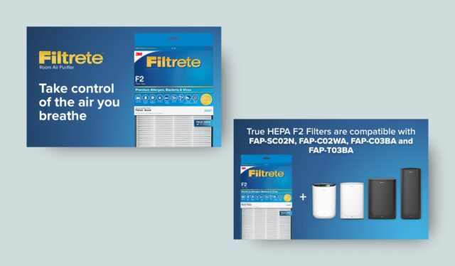 Working with an established brand like Filtrete also meant adhering closely to detailed brand guidelines. This required precision and consistency across all design elements, from color usage and typography to imagery and tone of voice. Navigating these standards while still finding space for creativity was a valuable experience in maintaining brand integrity across both digital and physical touchpoints.